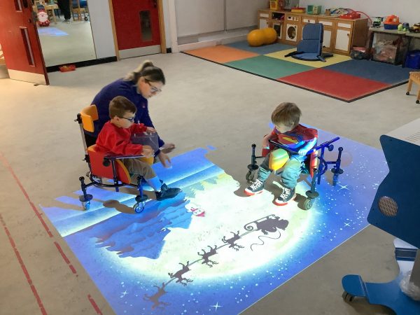 Engagement – Specifically, the SENse Flex, a versatile mobile interactive projector, captivates attention and encourages active participation. Furthermore, the interactive projection creates a dynamic and responsive environment, which stimulates curiosity and engagement. This is especially beneficial for those with sensory processing needs or limited movement. As a result, users can make minimal movements to alter aspects of their immediate environment using this interactive floor or table setup.