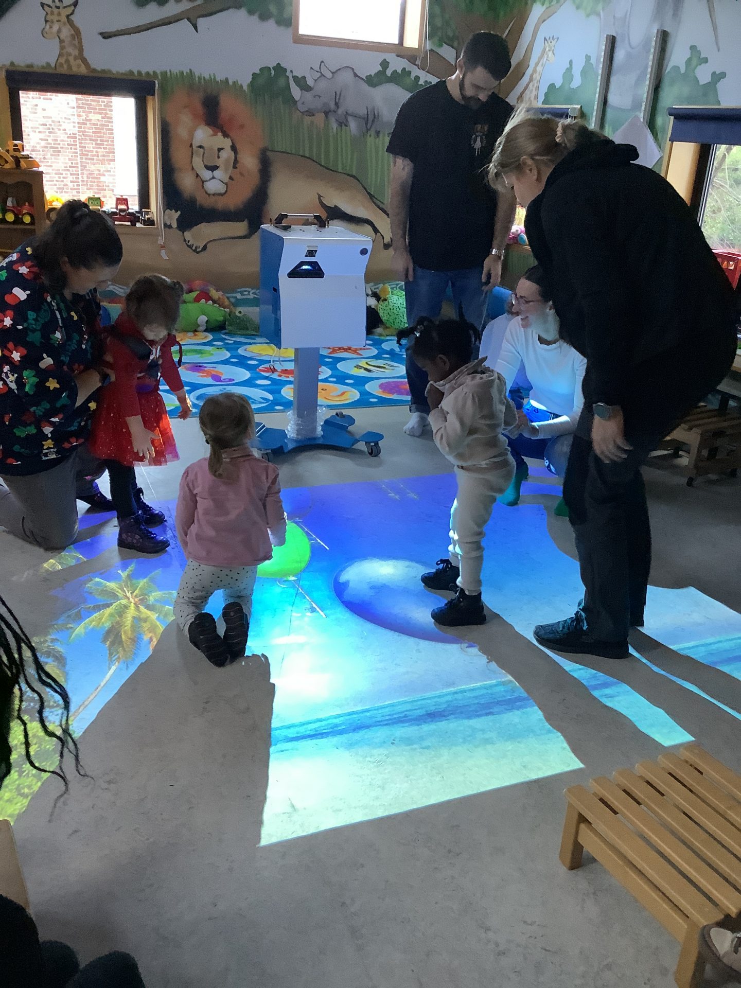 Introducing our SENse Flex, our mobile interactive projection unit: Enhance flexibility and adaptability in your interactive setups with this versatile sensory projector. Whether used as an interactive table or on the floor, the unit’s variable projection sizes let you customise the display to suit your needs and space constraints. This optimal viewing experience encourages active participation and collaboration among users.