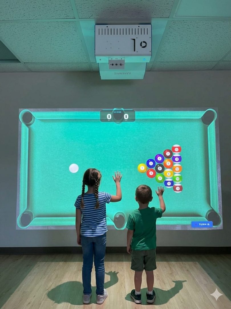 Our SENse Halo guarantees a consistent and optimized visual experience on the wall, thanks to its fixed projection size. Consequently, users can enjoy a standardised display that perfectly suits interactive activities, which in turn fosters engagement, collaboration, and learning. Whether it’s used in a classroom, therapy room, or any other setting, our solution offers reliable and visually appealing results. Thus, you can count on a seamless and effective interactive experience in various environments.