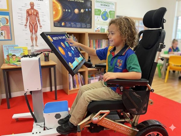 For users confined to beds due to illness, injury, or mobility limitations, The Serene becomes invaluable. Caregivers can adjust the screen to the appropriate height and angle, allowing users to comfortably view and interact with the content displayed. Whether they’re engaging in interactive content, completing an educational task, or using sensory applications, The Serene ensures accessibility without compromising on comfort.